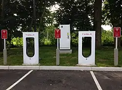 - ↑ «Tesla opens "Mega" Superchargers with lounge, food services, kid's area, and pet amenity». www.teslarati.com (en inglés estadounidense). Consultado el 28 de marzo de 2018.