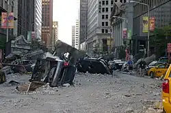 Los Vengadores, liderados por Steve, intentan proteger la ciudad, pero comprenden que es una misión difícil. Mientras llegaban más Chitauri a la Tierra, Banner llega en una motocicleta y se transforma en Hulk incrementando así el poder destructivo del equipo y permitiendo evacuar a los civiles que están atrapados en el fuego cruzado. Por otro lado, Loki es derribado por Barton con una flecha explosiva y posteriormente recibe una golpiza por parte de Hulk que lo deja en muy mal estado. Natasha consigue llegar hasta el generador del portal, en donde Selvig, ya liberado del control de Loki, revela que el cetro de Loki es la clave para poder cerrar el portal.