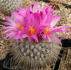 ![]() Thelocactus macdowellii en plena floración. | ||