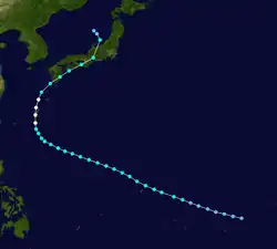 Este brusco cambio de dirección de la tormenta sorprendió a una gran cantidad de buques y embarcaciones pequeñas que se encontraban fondeadas en la estrecha bahía Buckner Bay ubicada en la costa sureste de la isla de Okinawa, estas naves no pudieron escapar hacia mar abierto.[1]