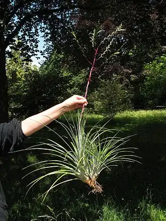Tillandsia: nombre genérico que fue nombrado por Carlos Linneo en 1738 en honor al médico y botánico finlandés Dr. Elias Tillandz (originalmente Tillander) (1640-1693).