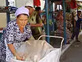 En Sudeste Asiático es una banda multiusos que puede anudarse alrededor de los hombros para llevar colgado tanto un bebé como la compra, o bien como velo sobre la cabeza. |