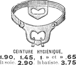 - ↑ «Ads and patents for suspenders to hold menstrual pads (U.S.A., late 19th century)». mum.org (en inglés). Museum of Menstruation. Consultado el 28 de noviembre de 2021.