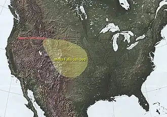 Es la segunda erupción más reciente que formó una caldera a partir del Punto caliente de Yellowstone y expulsó 280 km³ de material volcánico. Esta erupción fue precedida por la de la toba de Huckleberry Ridge y seguida por la de la toba de Lava Creek, ambos generados por el punto caliente de Yellowstone.[2]