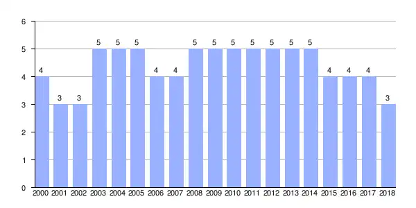| Gráfica de evolución demográfica de Toxiño entre 2000 y 2018 |