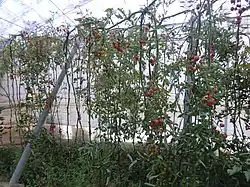 El cultivo se realiza bajo estructuras de protección, destacando las tradicionales de tipo plana (parrales) y multicapilla (raspa y amargado) representando el 70 % de la superficie bajo abrigo. Estos cultivos reducen las necesidades hídricas, así como la protección del viento, y de los daños por plagas, pájaros; los protegen de las bajas temperaturas; además de reducir el impacto de los climas desérticos, y un aprovechamiento más eficaz de la energía solar.