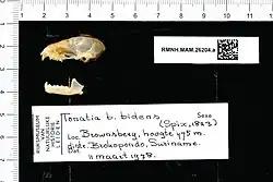 Tonatia bidens es una especie de murciélago de la familia Phyllostomidae. Se alimenta de frutas, así como de la caza de pequeñas aves, Una vez que las aves son capturadas son llevados a un refugio y se las comen.