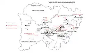 Topónimos que son clasificados como segoviano-abulenses por diversos autores: