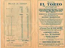 | 7 de diciembre de 1956 | Fernando de los Reyes "El Callao"* | Fermín Rivera | Antonio Borrero "Chamaco" | Clavelito/ San Mateo | ||||||||