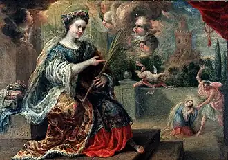 - ↑ Para la identificación de los asuntos de los lienzos: Rebollar Antúnez, Alba, «El colegio dominico de Atocha en Madrid. Una propuesta para su reconstrucción», Boletín de la Real Academia de Bellas Artes de la Purísima Concepción, Valladolid (2012), 47, pp. 67-92, p. 86.