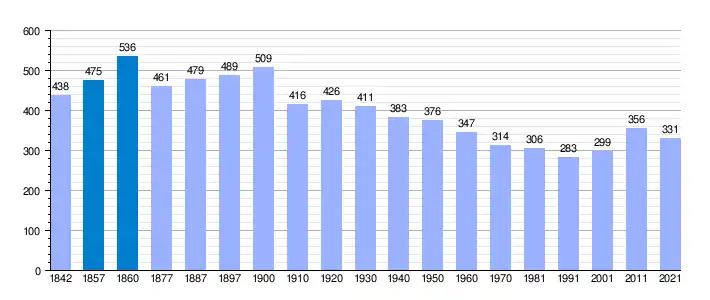 | Gráfica de evolución demográfica de Tormos[2] entre 1842 y 2021 |