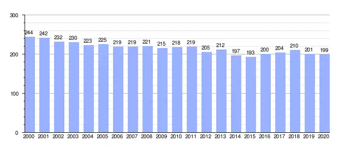 | Gráfica de evolución demográfica de Tornón[2] entre 2000 y 2020 |