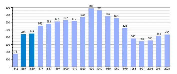 | Gráfica de evolución demográfica de Tornadizos de Ávila[5] entre 1842 y 2021 |