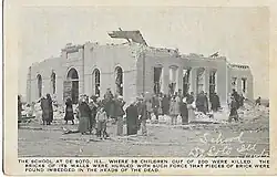 Nueve escuelas en tres estados fueron destruidas, en las que murieron 69 estudiantes. Más escuelas fueron destruidas y más estudiantes murieron (así como el récord de una sola escuela de 33 muertes en De Soto, Illinois) que en cualquier otro evento de tornado en la historia de Estados Unidos.[27] Contando los que regresaban a casa de las escuelas y los que murieron en las escuelas, la cifra fue de 72 estudiantes.[28] Aproximadamente un tercio de las víctimas del tornado eran niños.[29]