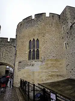 El rey Enrique III de Inglaterra hizo construir la torre para su vivienda privada, que pudo ocupar el primer piso del edificio.[3] La torre asegura el anillo más interno de la fortaleza y protege a la puerta ensangrentada del agua. El piso superior proporcionó control sobre el tráfico del río Támesis.[4] La forma redonda probablemente se basa en los torreones de los castillos franceses de la época.[3]