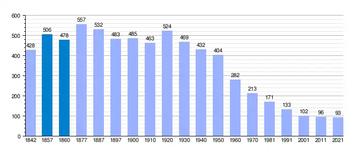 Hacia mediados del siglo XIX, el lugar tenía contabilizada una población de 485 habitantes.[4] La localidad aparece descrita en el decimoquinto volumen del Diccionario geográfico-estadístico-histórico de España y sus posesiones de Ultramar de Pascual Madoz de la siguiente manera: