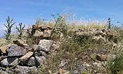 El yacimiento presenta en superficie el alzado de una torre medieval, circular, que se apoya sobre otra construcción de planta cuadrada, que posiblemente corresponda a una turris ibérica. Junto a estos restos, en la ladera Norte, se localiza una dispersión de tégulas, terra sigillata, etc.,[4] de época romana, cerámicas pintadas islámicas y vidriadas claramente cristianas.[3]