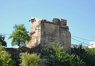 La torre se encuentra en estado de ruina. De planta cuadrada, fue levantada con muros perimetrales de tapia de hormigón, de gran dureza, y con una altura que oscila entre los 80 y los 90 centímetros. Se elevan de forma regular, hasta completar un cuerpo. Por encima, de manera más irregular, hay restos del muro original. Alrededor, hay un muro de mampostería, se supone que delimitaba la torre del resto de la casa.