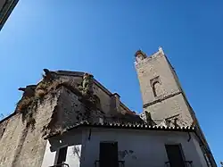 La torre se encuentra adosada a la Iglesia de San Dionisio. Su base es una de las capillas de la iglesia y consta de una espadaña dotada de una campana. Es propiamente un edificio civil de propiedad municipal que no corresponde en origen con el resto. Declarada como Bien de Interés Cultural con un código distinto al de la iglesia en sí (RI-51-0004318).[3]