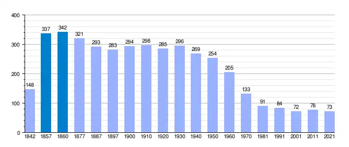 | Gráfica de evolución demográfica de Torrecilla del Monte[3] entre 1842 y 2021 |