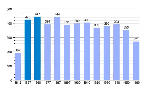 | Gráfica de evolución demográfica de Torres de Montes[5] entre 1842 y 1960 |