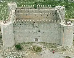 Imagen área del Castillo del Montgrí Castillo del Montgrí. Edificio medieval de carácter defensivo. erigido a lo alto del Montgrí (303 m). Su construcción se inició el año 1294, como estrategia de intimidación del condado de Barcelona frente al condado vecino, pero nunca se terminó. Su acceso es a pie y no es complicado. Está bien señalizado.