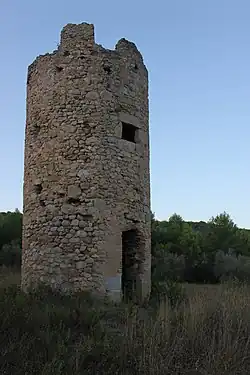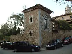 Murallas. Antiguamente la villa estaba rodeada por murallas. Existían 6 portales o entradas. Actualmente solo se conserva el Portal de Santa Caterina, en el norte del casco antigua, justo detrás de la Iglesia de Sant Genís. Bordeando la carretera, tanto en dirección este y oeste aún se puede contemplar pedazos de la muralla. Al oeste del portal, también se conserva una torre de la muralla, que recibe el nombre de Torre de les Brúixes (torre de las brujas), debido a una leyenda local.