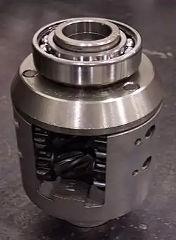 El torsen es el único sistema capaz de repartir el deslizamiento de forma independiente a la velocidad de giro de los semiejes. Funciona mediante la combinación de tres pares de ruedas helicoidales que engranan a través de dientes rectos situados en sus extremos (engranajes de concatenación). La retención o el aumento de la fricción se produce porque las ruedas helicoidales actúan como un mecanismo de tornillo sin fin: el punto de contacto entre los dientes se desplaza sobre una línea recta a lo largo del propio diente, lo que significa la unión del movimiento de giro de las ruedas con el movimiento de deslizamiento que supone fricción. El tarado o grado de resistencia se determina precisamente por el ángulo de la hélice de estas ruedas helicoidales.