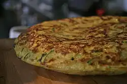 La tortilla paisana (a veces también como tortilla a la paisana)[1] es una variante de la tortilla de patatas en la que además de llevar patatas como ingrediente principal, se le añaden otras verduras (zanahorias, guisantes, etc) y elementos cárnicos como puede ser el jamón o chorizo.[2] La denominación paisana de esta tortilla viene a indicar que no siendo como la tortilla española es paisana de ella (es decir: del mismo país).[3] La tortilla es muy popular en la cocina española y es habitual que se sirva como tapa.