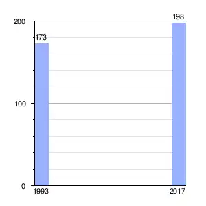 | Gráfica de evolución demográfica de Tortola entre 1993 y 2017 |