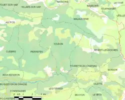 Toudon es una población y comuna francesa, en la región de Provenza-Alpes-Costa Azul, departamento de Alpes Marítimos, en el distrito de Niza y cantón de Roquesteron.