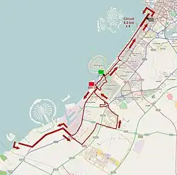El Tour de Dubái dispuso de cuatro etapas para un total de 663 kilómetros. Todas las etapas tuvieron salida y llegada en Dubái a excepción de la tercera que finalizó en Hatta, además de ser la etapa más larga con 205 km fue la etapa reina al finalizar en un repecho de 2,65 km y 9% de pendiente media. El resto de las etapas fueron completamente llanas.[2]