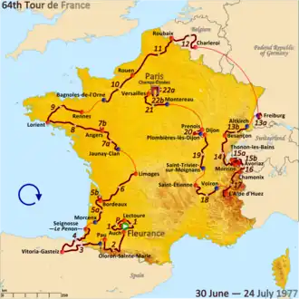 22.ª (1) 24 jul París-París 6 (CR) Bandera de Alemania Occidental Dietrich Thurau Bandera de Francia Bernard Thévenet