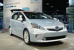El Toyota Prius v, llamado Prius α en Japón, y Prius + en Europa, es un crossover híbrido eléctrico de lujo producido por Toyota Motor Corporation. Las ventas iniciaron en Japón en mayo de 2011 y fue lanzado en el mercado estadounidense en octubre de 2011. Las ventas en Europa se iniciaron a mediados de 2012.[1][2][3] The Prius v fue presentado en el Salón del Automóvil de Detroit de 2011 y es la primera variante que se desprende de la familia Prius.[4][5]