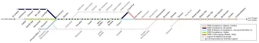 - ↑ a b «Trains Navettes Rapides». ONCF (en francés). Archivado desde el original el 4 de mayo de 2012. Consultado el 22 de enero de 2021.