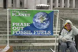 Se considera que los principales obstáculos para la aplicación generalizada de las energías renovables a gran escala y las estrategias energéticas con bajas emisiones de carbono son principalmente sociales y políticos, más que tecnológicos o económicos.[39] Los principales obstáculos son: la negación del cambio climático, el lobby de los combustibles fósiles, la inacción política, el consumo energético insostenible, las infraestructuras energéticas obsoletas y las limitaciones financieras.[40]