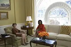 - ↑ Wolffe, Richard (5 de noviembre de 2008). «Michelle, On The Move: The First Lady readies her family for Washington.». Newsweek. Newsweek, Inc. Consultado el 9 de enero de 2009.