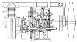 Muchos de los primeros automóviles tenían motor trasero, con una transmisión por correa simple que funcionaba como un sistema de una sola velocidad. La transmisión del Panhard et Levassor de 1891 se consideró un avance significativo, ya que disponía de tres velocidades.[5][6] Era un sistema asíncrono deslizante, en el que cambiar de marcha implicaba deslizar los engranajes en sus ejes para obtener la combinación deseada.[7] Incluso después de que los automóviles de turismo dispusieran de transmisiones síncronas, muchas transmisiones para camiones pesados, motocicletas y coches de carreras permanecieron sin sincronizar para resistir fuerzas elevadas o disponer de un accionamiento del cambio más rápido.