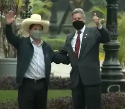 ![]() El entonces presidente Francisco Sagasti a la derecha y el entonces presidente electo Pedro Castillo a la izquierda. | ||