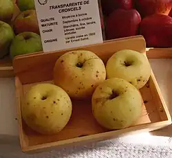 - ↑ a b c d e f g La manzana 'Transparente de Croncels' en el "National fruit collection.org.uk". Consultado el 16 de abril de 2020.