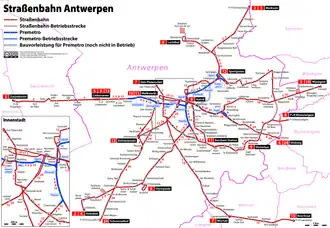 ![]() Mapa de la red de Antwerpse Tram | ||