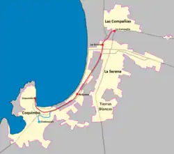 - ↑ «Primer tranvía del país iniciaría operaciones entre La Serena y Coquimbo en 2024». El Mercurio. 3 de marzo de 2018. Archivado desde el original el 12 de marzo de 2018. Consultado el 12 de marzo de 2018.