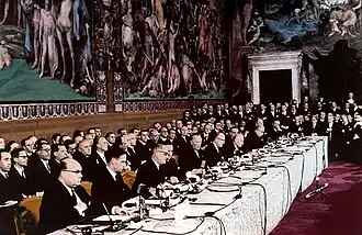Ceremonia de firma del tratado en el Palazzo dei Conservatori, en la Colina Capitolina, Roma