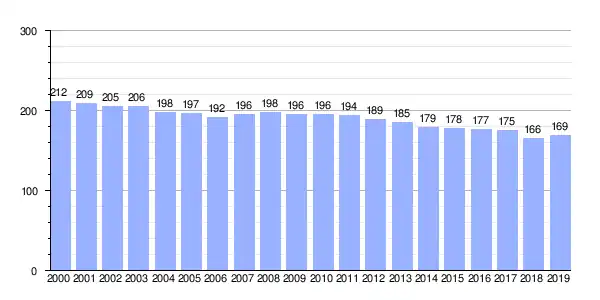 | Gráfica de evolución demográfica de Trazo entre 2000 y 2019 |