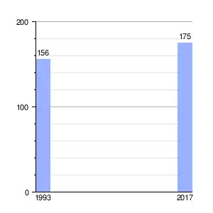 | Gráfica de evolución demográfica de Tres Marías entre 1993 y 2017 |