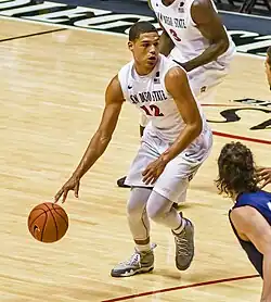 - ↑ Zeigler, Mark (16 de mayo de 2019). «Aztecs notes: Jalen McDaniels at draft combine, Trey Kell is MVP of Canadian finals». San Diego Union Tribune.