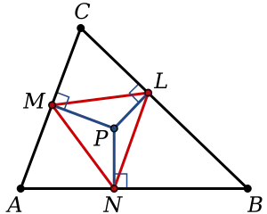 - Si P = Ortocentro, entonces LMN = Triángulo órtico.