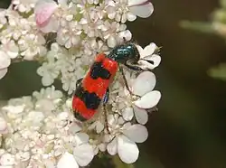 El lobo de las abejas (Trichodes apiarius) es un escarabajo ajedrezado descrito por Carlos Linneo,[1] de color negro con los élitros rojos a tres bandas negras con reflejos violeta que miden entre 10 y 16 milímetros de longitud.
