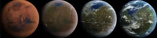 Siguiendo la mayor parte de las técnicas sugeridas hasta el momento de terraformación, y muchas otras que aparecen a lo largo de la historia, Marte cambia su rostro de un planeta rojo, seco y muerto, a un planeta vivo con numerosas especies animales y vegetales y una atmósfera respirable para el ser humano. Aun así, la baja densidad de esta, la menor gravedad dan lugar a un nuevo tipo de humanos más altos y delicados, que no soportan con facilidad ir a la Tierra. El menor radio del planeta provoca además que los horizontes en Marte parezcan estar mucho más cercanos que los de la Tierra.