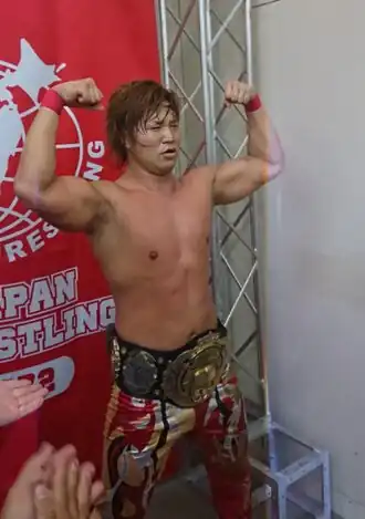![]() El excampeón Kento Miyahara en 2018, con el diseño actual del campeonato. | |||||||||||||||||